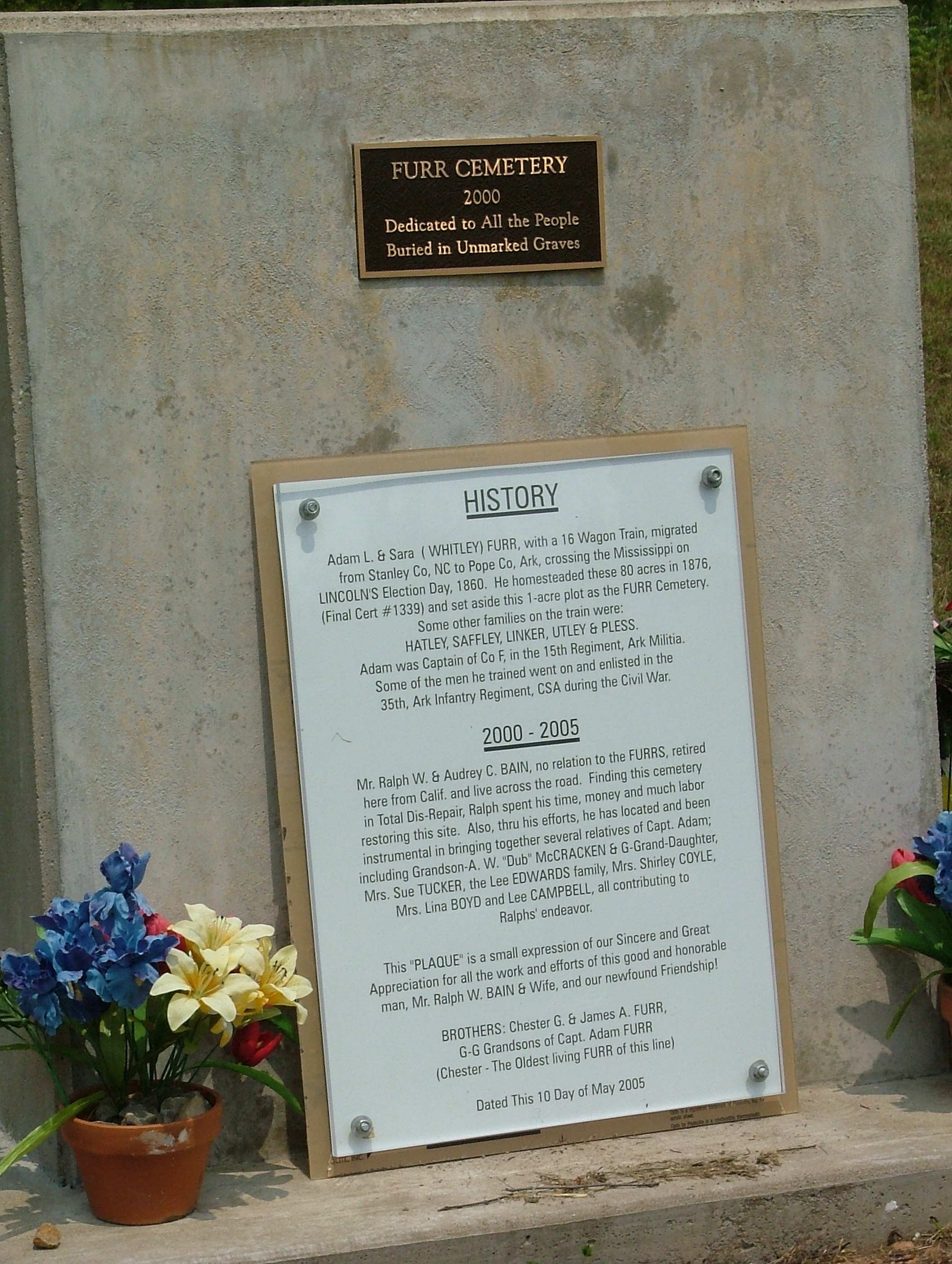Thanks to Chester Gordon Furr, here are some updated (2005) photos of the Furr Cemetery in Pope County, Arkansas.